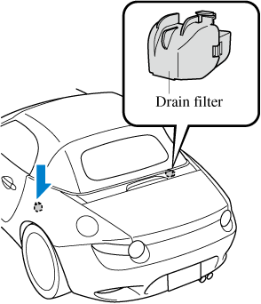 If leaves or other matter block the drain filter, water may enter the vehicle.