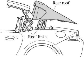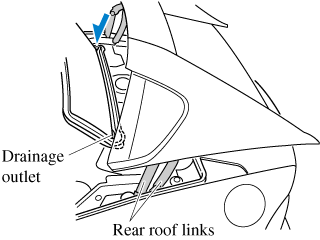 When cleaning the drainage outlets, be careful not to touch the roof links or the framework of the rear roof. Otherwise, you could get injured.