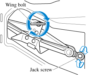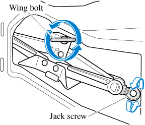 Insert the wing bolt into the jack with the jack screw pointing back and turn the wing bolt clockwise to temporarily tighten it.