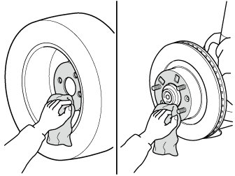 Remove dirt and grime from the mounting surfaces of the wheel and hub, including the hub bolts, with a cloth.
