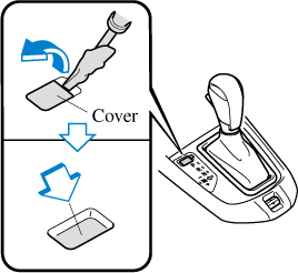 Remove the shift-lock override cover using a cloth-wrapped flat head screwdriver.
