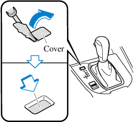 Remove the shift-lock override cover using a cloth-wrapped flat head screwdriver.