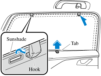 Securely hook the sunshade. Otherwise, the sunshade may retract suddenly resulting in injury such as fingers get pinched.