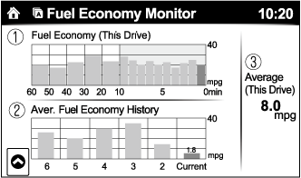 The fuel economy monitor screen after the ignition is switched from ON to OFF is changed to the original fuel economy monitor screen when the ignition is switched ON the next time.