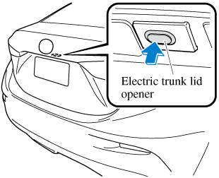 The trunk lid can be closed when the doors are locked with the key left in the vehicle. However, to prevent locking the key in the vehicle, the trunk lid can be opened by pressing the electric trunk lid opener. If the trunk lid cannot be opened despite doing this procedure, press the electric trunk lid opener to fully open the trunk lid after pushing the trunk lid completely closed.