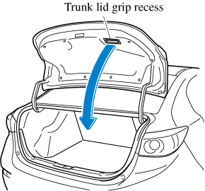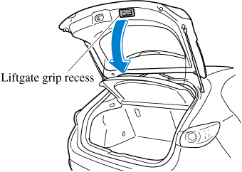 Lower the liftgate/trunk lid slowly using the liftgate/trunk lid grip recess, then push the liftgate/trunk lid closed using both hands.
