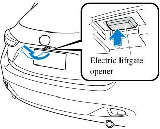The liftgate can be closed when the doors are locked with the key left in the vehicle. However, to prevent locking the key in the vehicle, the liftgate can be opened by pressing the electric liftgate opener. If the liftgate cannot be opened despite doing this procedure, first push the liftgate/trunk lid completely closed, then press the electric liftgate opener to fully open the liftgate.