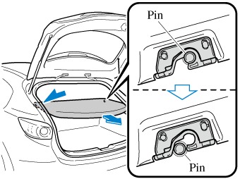 Lift the end of the luggage compartment cover a little, pull it outward, and remove it from the pins.