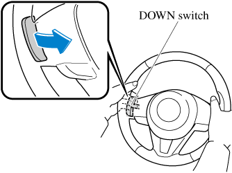 To shift down to a lower gear with the steering shift switches, pull the DOWN switch