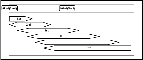 For each gear position while in the manual mode, the speed limit is set as follows: When the selector lever is operated within the range of the speed limit, the gear is shifted.