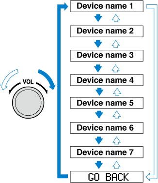 When “GO BACK” is selected and the audio control dial is pressed, the display returns to “DEVICE INFO”.