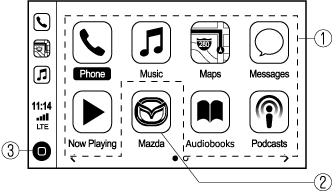 Launches the Apple CarPlay™ application. Refer to the help information available with each application for the method of using each application. |