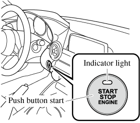 After starting the engine, the push button start indicator light (amber) turns off and the ignition switches to the ON position.