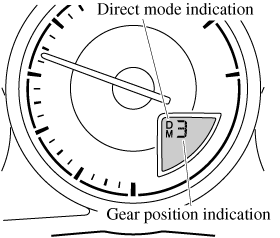 While in direct mode, the D and M indication illuminate and the gear position in use is illuminated.