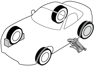Block the wheel diagonally opposite the tire to be changed. When blocking a wheel, place a tire block both in front and behind the tire.
