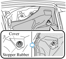 Push the stopper rubber through the cover on the right side of the vehicle while slightly lifting the cover up.