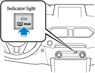 To turn on the windshield wiper de-icer, switch the ignition ON and press the rear window defogger switch (Search).