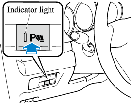 When the ignition is switched ON with the parking sensor activated, the indicator light turns on.