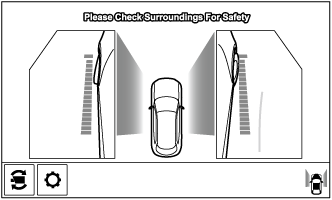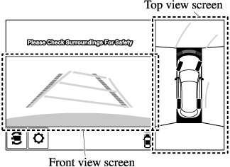 Displays the image of the area around the vehicle and the rear of the vehicle.