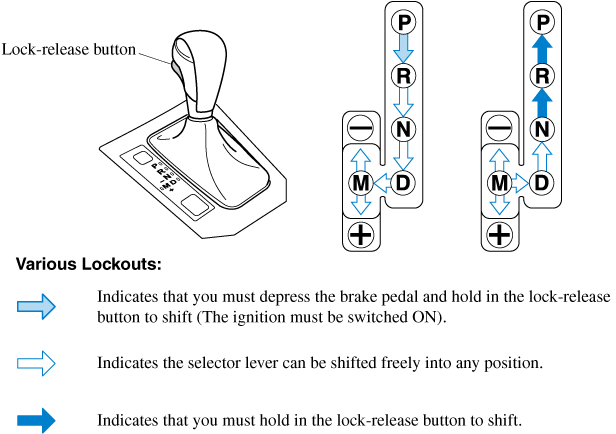The Sport AT has an option that is not included in the traditional automatic transaxle that gives the driver the option of selecting each gear instead of leaving it to the transaxle to shift gears. Even if you intend to use the automatic transaxle functions as a traditional automatic, you should also be aware that you can inadvertently shift into manual shift mode and an inappropriate gear may be retained as the vehicle speed increases. If you notice the engine speed going higher or hear the engine racing, confirm you have not accidentally slipped into manual shift mode (Search).