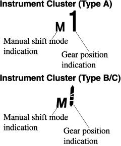 If the automatic transaxle fluid (ATF) temperature becomes too high, there is the possibility that the transaxle will switch to automatic shift mode, canceling manual shift mode and turning off the gear position indication illumination. This is a normal function to protect the AT. After the ATF temperature has decreased, the gear position indication illumination turns back on and driving in manual shift mode is restored.