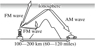 AM signals bend around such things as buildings or mountains and bounce off the ionosphere.