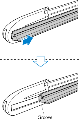 Insert the end of the new blade rubber into the groove of the blade holder until it contacts the end of the blade holder.