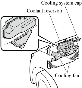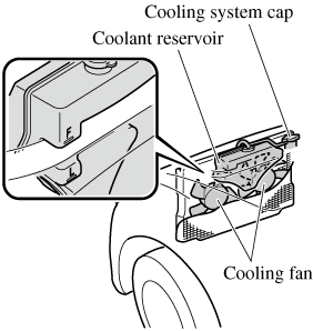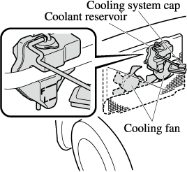 If the cooling fan does not operate while the engine is running, the engine temperature will increase. Stop the engine and call an Authorized Mazda Dealer.