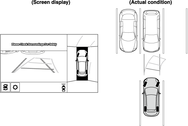 • Because images displayed in the top view screen are processed from each camera, the top view screen may display in the following ways.