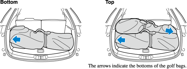 Top: Place the second golf bag with its bottom pointed to the right in the luggage compartment.