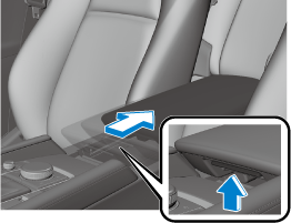 The lid can be opened/closed while it is slid to the 1st and 2nd stages, but if the rear seatback is folded, the lid cannot be opened/closed while it is slid to the 2nd stage because the rear seat (head restraint) will contact it.