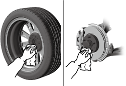 Remove dirt and grime from the mounting surfaces of the wheel and hub, including the hub bolts, with a cloth.