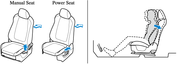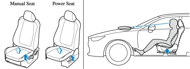 With the manual seat, if you raise the seat height, the seat moves forward. Adjust the seat forward or back again.