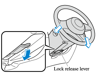 After adjusting the steering wheel position, make sure it is securely locked by trying to move it up and down: