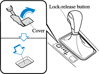 Remove the shift-lock override cover using a cloth-wrapped flat head screwdriver.