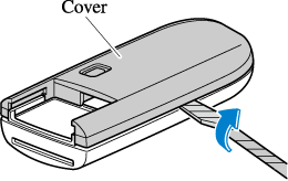 Twist a tape-wrapped flathead screwdriver in the direction of the arrow and open the cover slightly.
