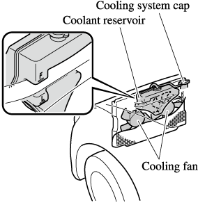 If the cooling fan does not operate while the engine is running, the engine temperature will increase. Stop the engine and call an Authorized Mazda Dealer.