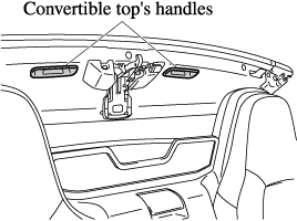 To raise the convertible top from inside the vehicle, use the convertible top's handles.