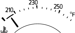If the engine load increases and the engine coolant temperature exceeds 100 °C (210 °F), the gauge indicates the engine coolant temperature.