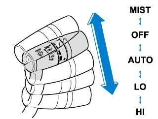 position while driving activates the windshield wipers once, after which they operate according to the rainfall amount.