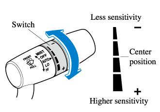The sensitivity of the rain sensor can be adjusted by turning the switch on the wiper lever.
