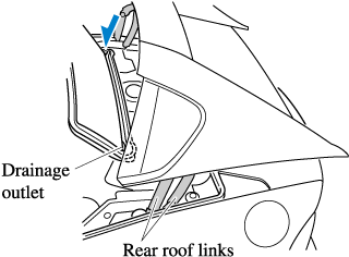 When cleaning the drainage outlets, be careful not to touch the roof links or the framework of the rear roof. Otherwise, you could get injured.