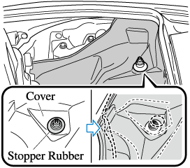 Push the stopper rubber through the cover on the right side of the vehicle while slightly lifting the cover up.