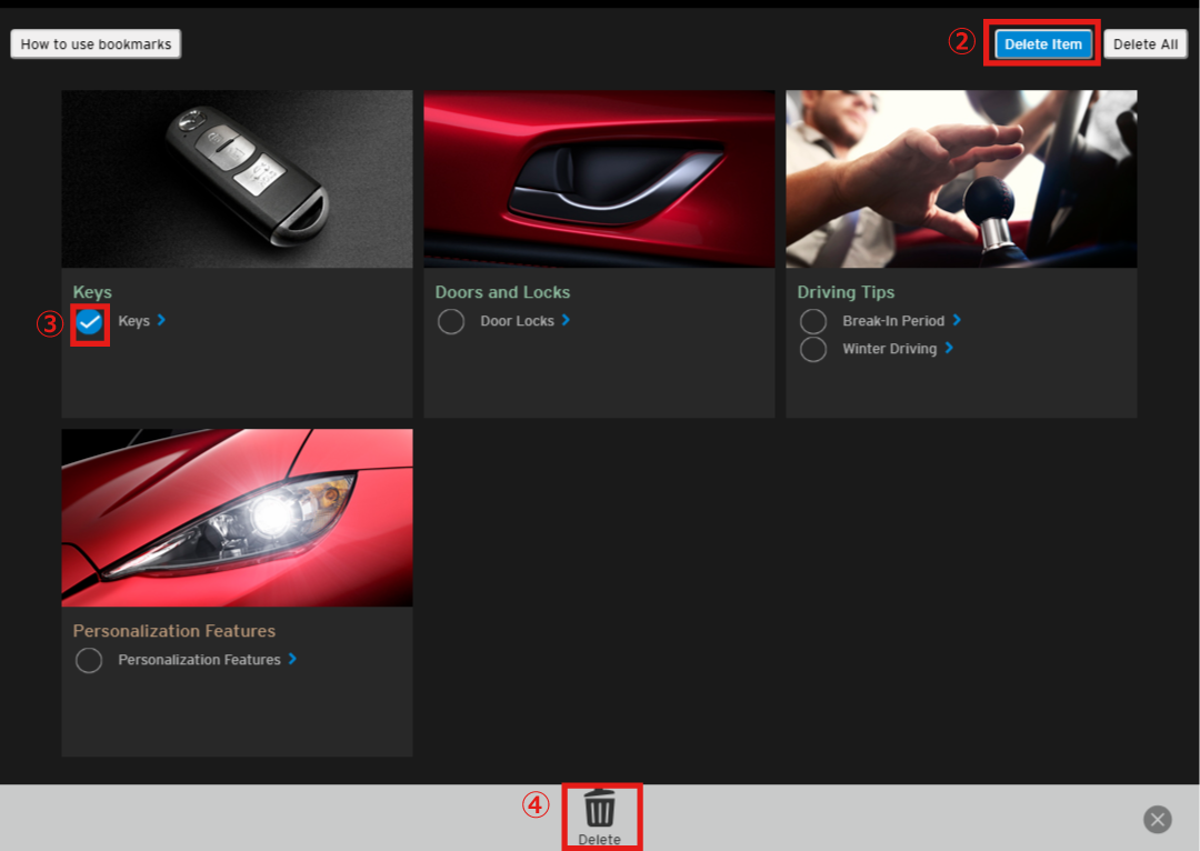 Items related to the keywords input in Step ② are displayed. Explanations of operations and functions are displayed when selecting the item you want to view.