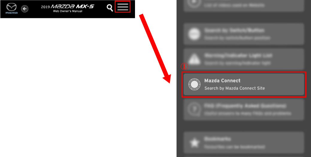 The Mazda Connect Website is displayed when Mazda Connect is selected from the menu.