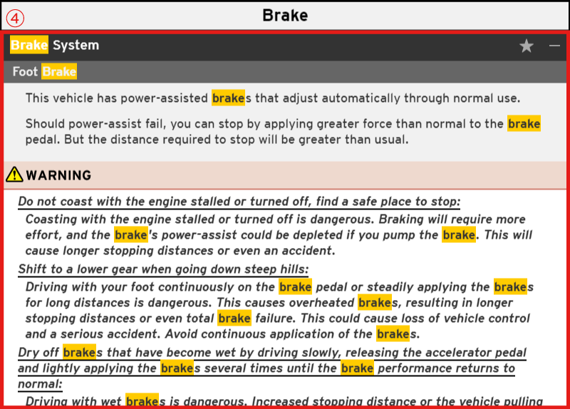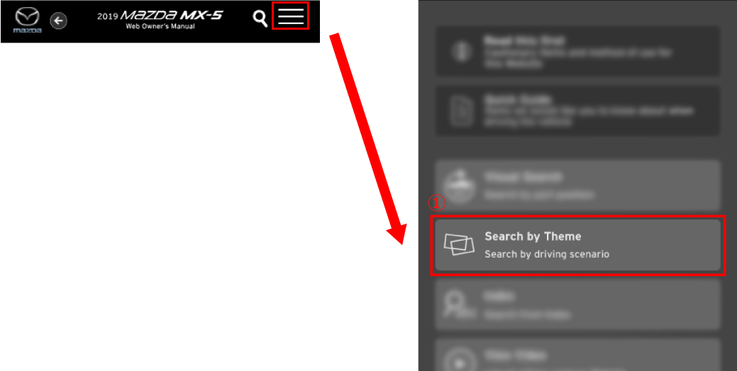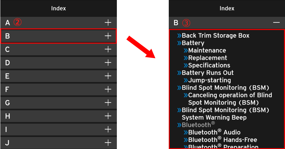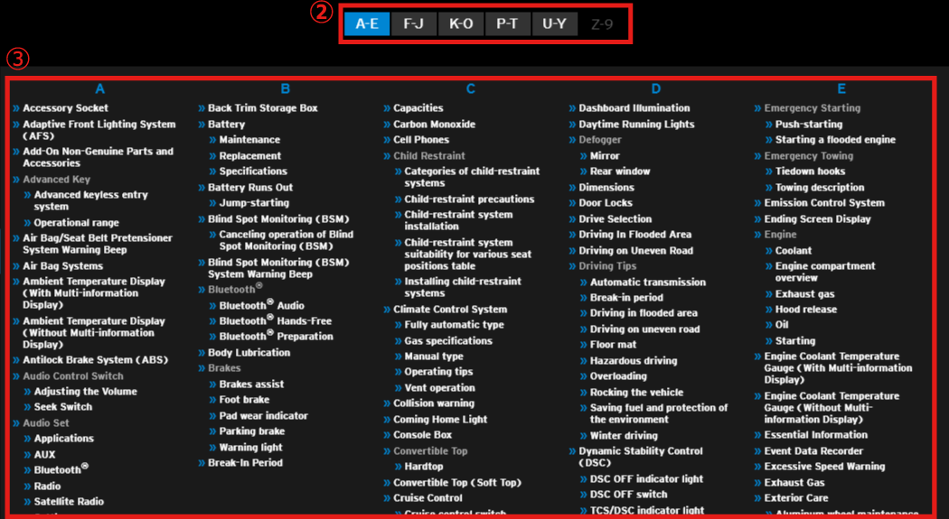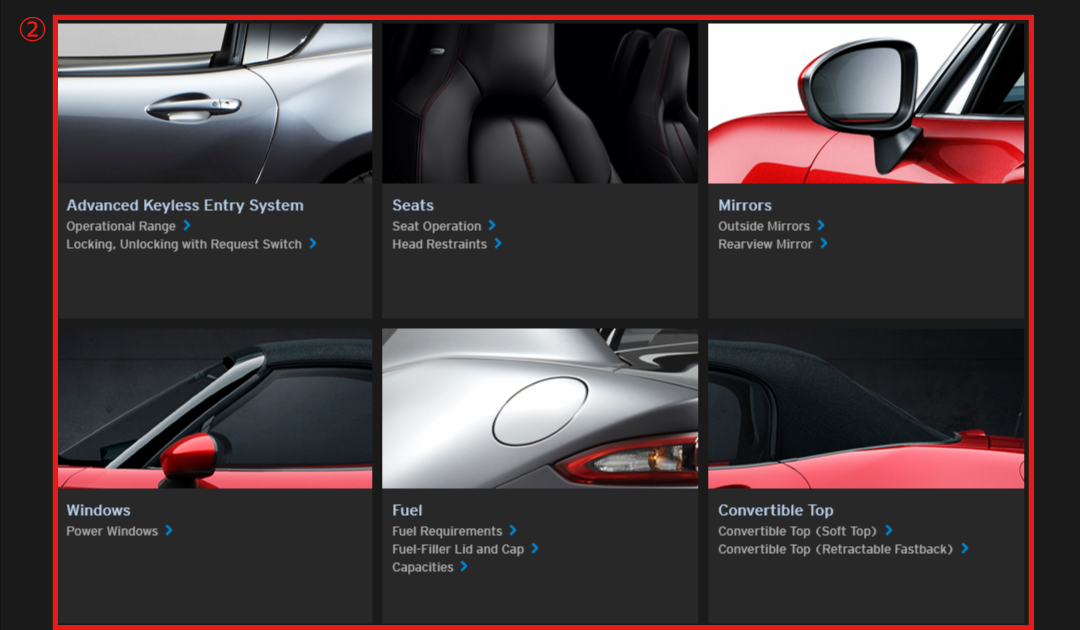 You can search for the information you need by selecting the scenario in which you are driving the vehicle.