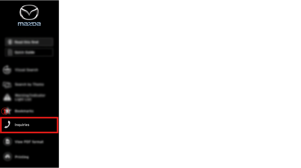 The search engine for Mazda Dealers is displayed when selecting Inquiries from the menu.