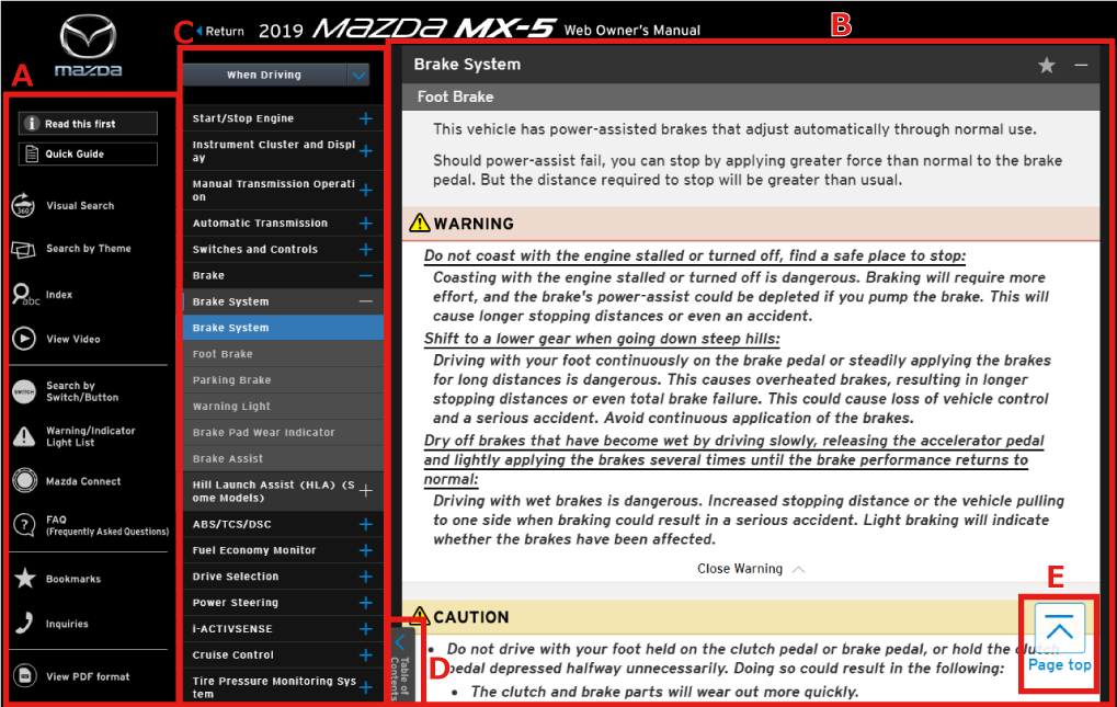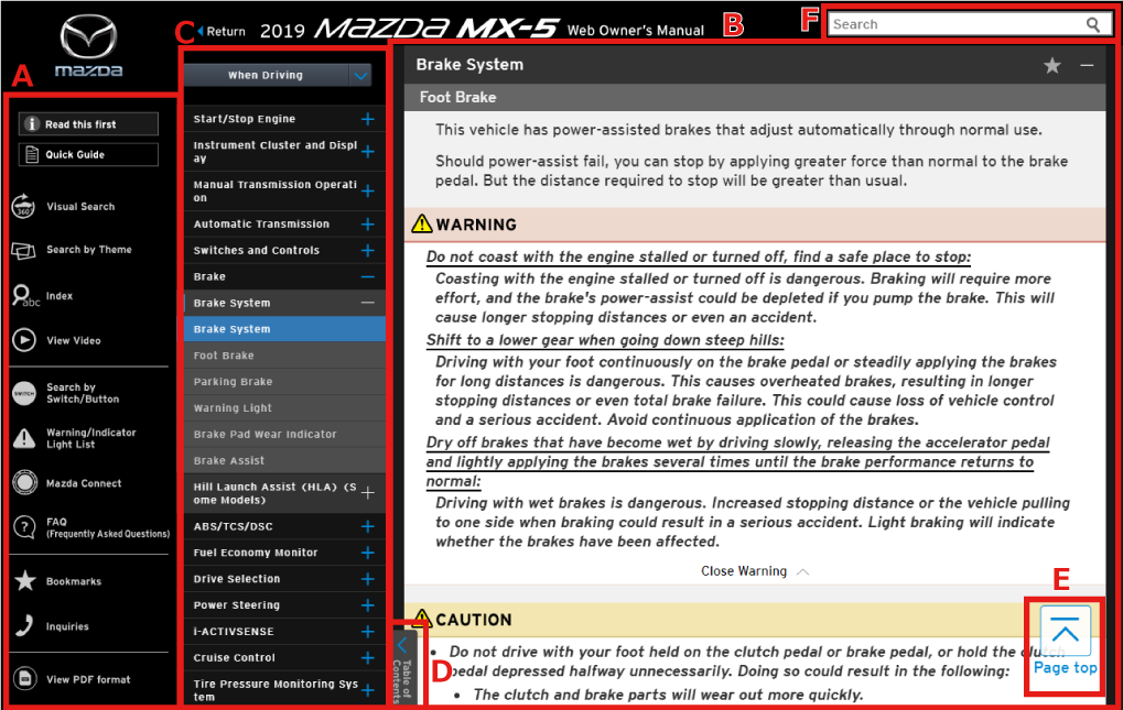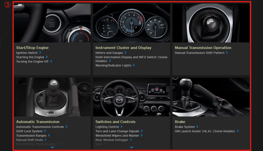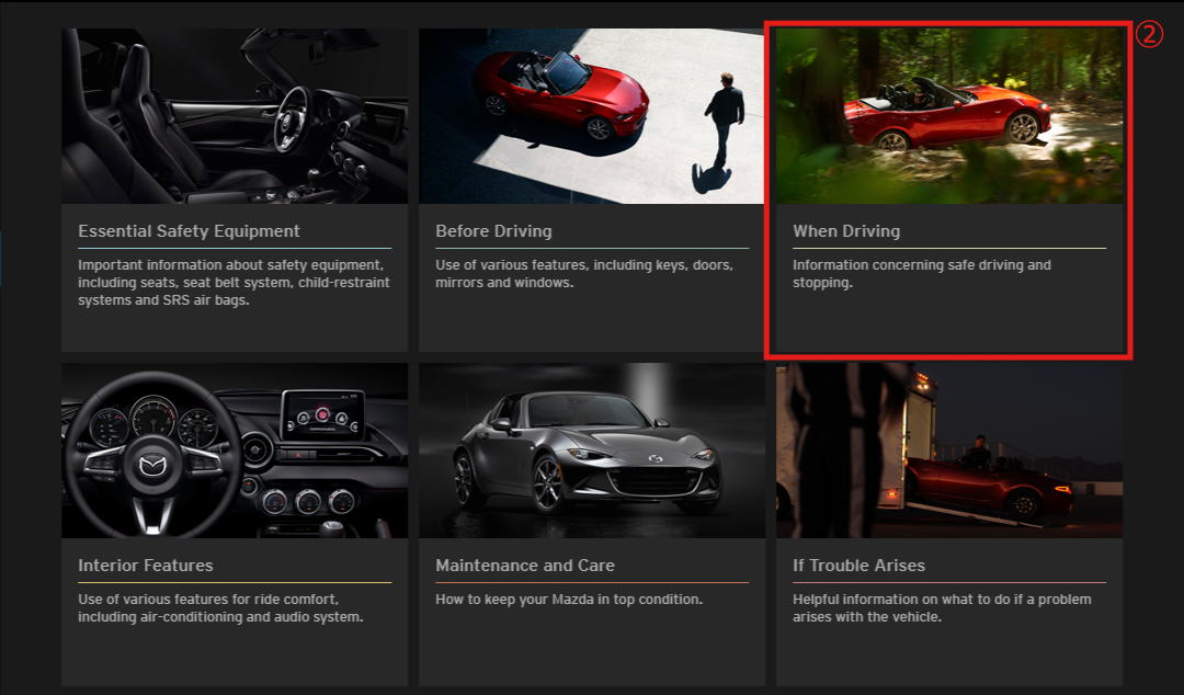 Illustrations complement the text to best explain how to enjoy your Mazda. By reading this Web owner's manual, you can learn about the features, important safety information, and driving under various road conditions.