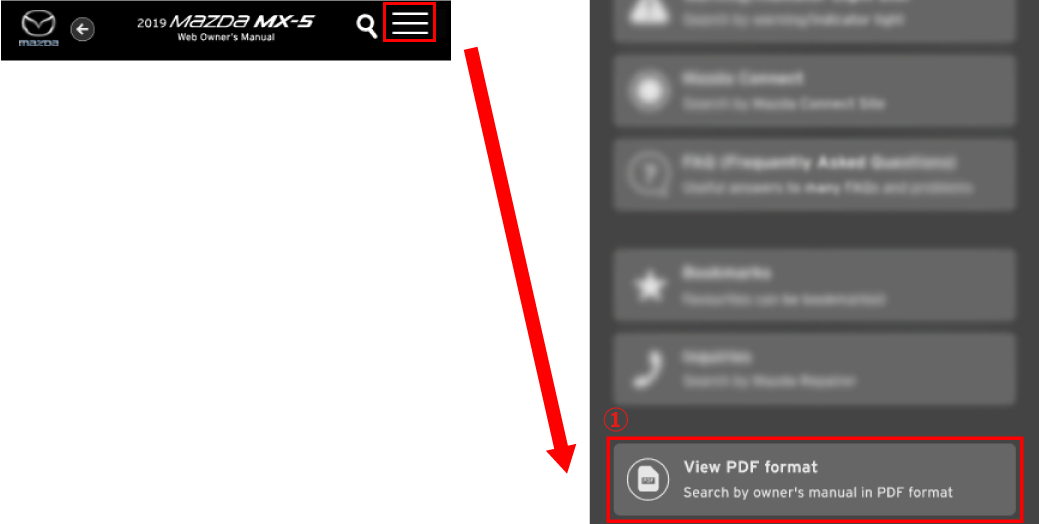 Owner's manuals in PDF format are displayed when selecting (View PDF format) from the menu.