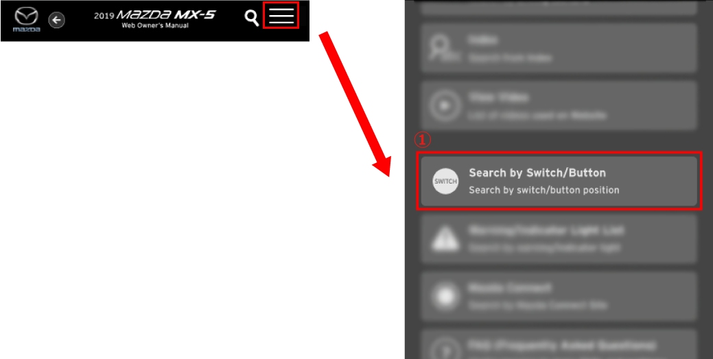 Explanations of operations and functions are displayed by selecting the switch/button.